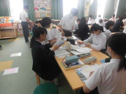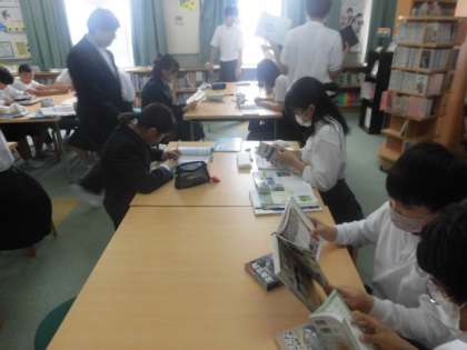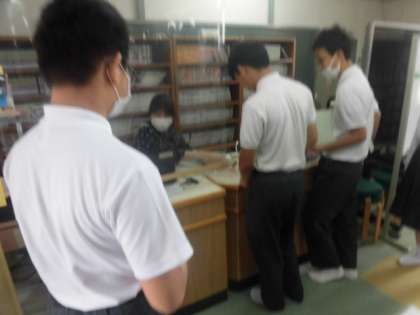 今日は図書室で行っています。本を借りたり、テストに向けての自習をしたりしています。