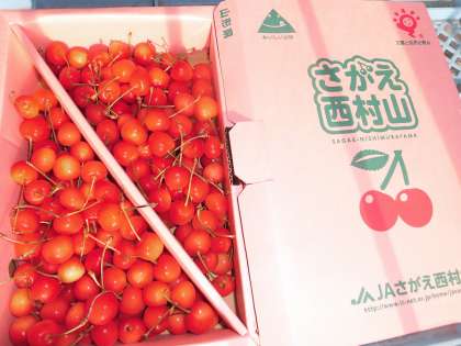 山形県産のさくらんぼが届きました。今が旬の、甘ずっぱいさくらんぼです。年に1回の登場です。しっかり味わって食べてくださいね。