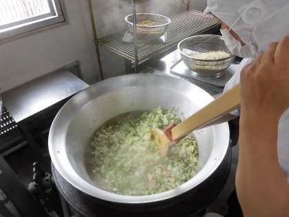 「野菜いため」には、ツナ、キャベツ、ピーマンを使っています。