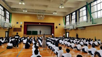 雨により避難場所がグラウンドから体育館に変更になりましたが、臨機応変に対応していました。