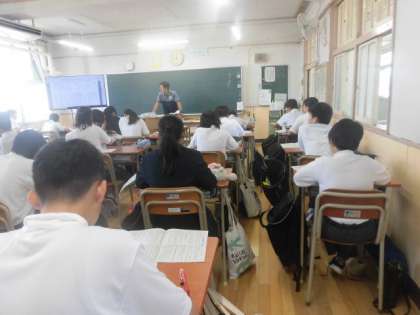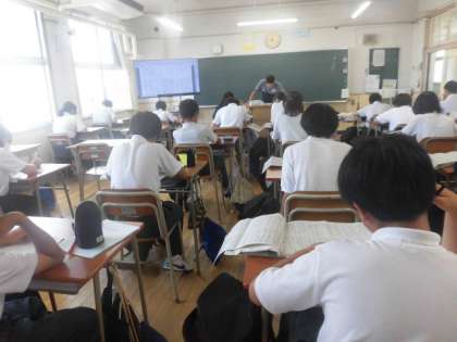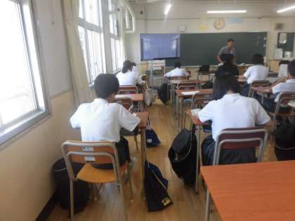 テストが返却されました。物語での登場人物の心情など、テスト問題の解説を聞いています。