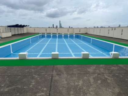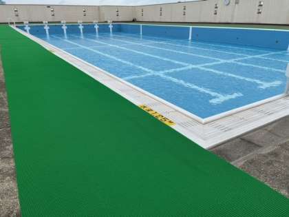 プール掃除も終え、プール整備を行いました。今年度はPTA予算よりプールサイドのマットを購入しています。