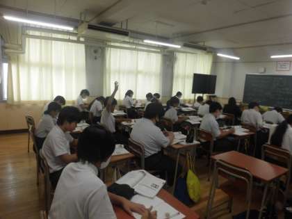 文字式の計算をしています。わからないところを、自分たちで教えあう姿も見られます。