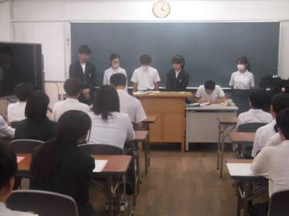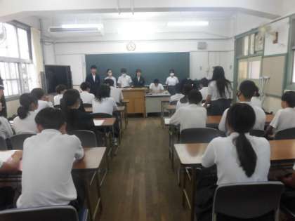 前期最終の生徒議会がありました。生徒会本部役員、各委員会の委員長、各学年の学級委員長が前期を通してできたことや課題であったことなどを発表しました。最後には、一人ずつ感想を言いました。大変なことも多かったと思いますが、代表としてよくがんばってくれました。前期お疲れさまでした!