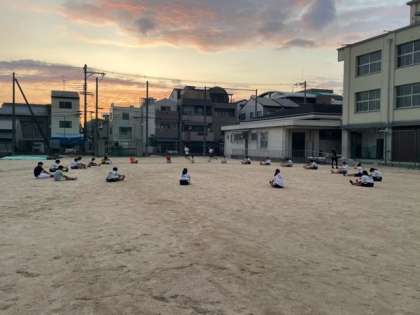 陸上部がストレッチをしている様子ですが、他のクラブも混じっています。