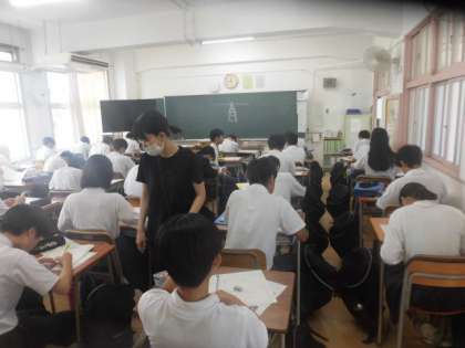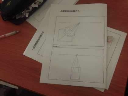 一点透視図法を使って、作図をしています。この図法を用いることで、立体的に見えますね。