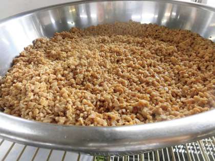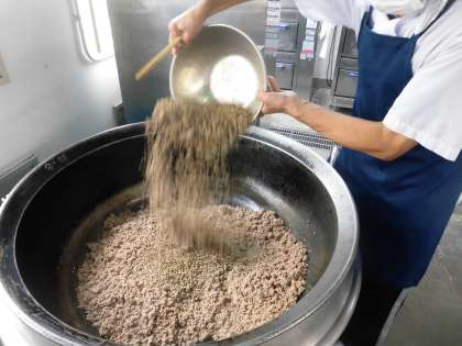 今日のキーマカレーライスには、大豆(ひきわり)と、豚レバー(チップ)を使っています。