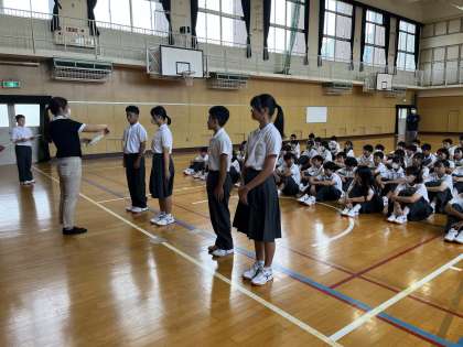 1年生の学年集会を行いました。水泳大会の賞状が授与されました。