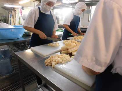 ・豚肉のねぎじょうゆ焼き ・ふきよせ煮 ・きゅうりの甘酢づけ ・ごはん ・牛乳 です。