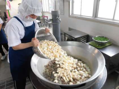 秋にたくさんとれておいしくなる、くり、ぎんなん、いも、野菜、きのこなどが使われます。