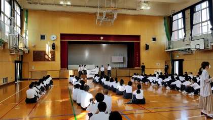 学級委員長から、「クラスのみんなで 声をそろえて 高みを目指そう」という10月の学年目標の発表がありました。