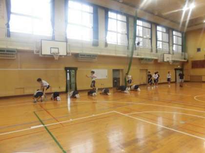 男子バスケットボール部はシューティングの後に、朝から基礎体力作りのトレーニングをがんばっています!