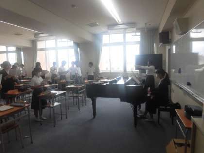 文化発表会に向けて、合唱の練習をしています。ピアノと指揮に合わせて、男女に分かれて、自分のパートを歌っています。