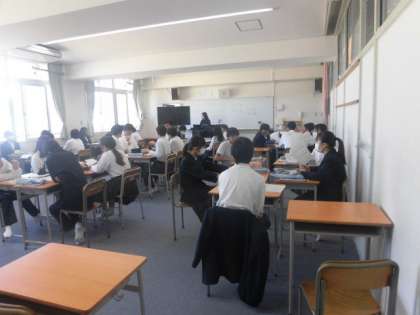 「涙をこえて」を歌っています。歌詞について、どうしてそのような歌詞になっているかをグループで考え、発表していきます。