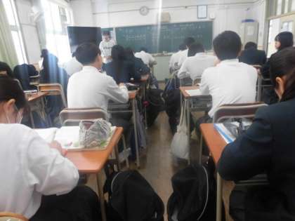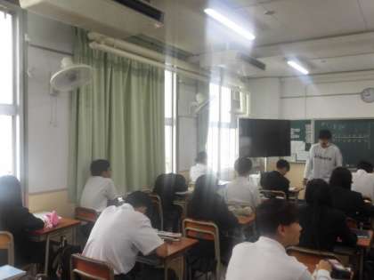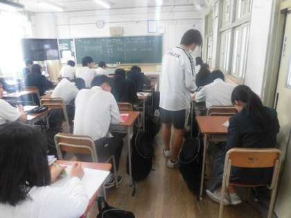 2次方程式の問題をどんどん解いていきます。わからないところは、しっかりと先生に質問をしています。