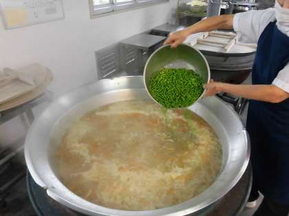 ・かつおのガーリックマリネ焼き[ノンエッグドレッシング] ・ウインナーとじゃがいものスープ ・キャベツのサラダ ・レーズンパン ・牛乳 です。