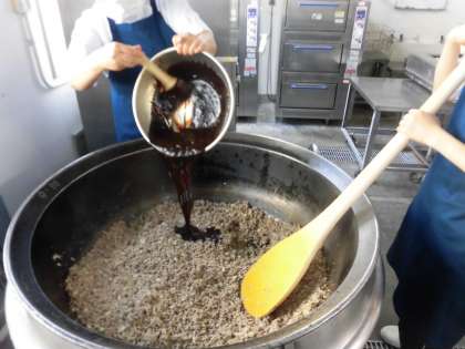 肉みそは、テンメンジャンや赤みそなどで味つけをしています。