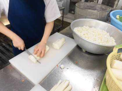 今日は、うずら卵を使っているので、卵アレルギーのある人には、卵を入れる前に取り除いて渡します。