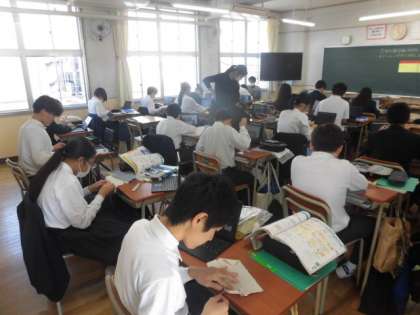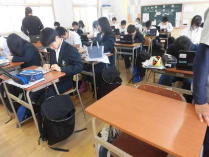 タブレットを見ながら「まつり縫い」などを確認してから、ペンケースづくりの続きをしています。みんな形が整ってきています。