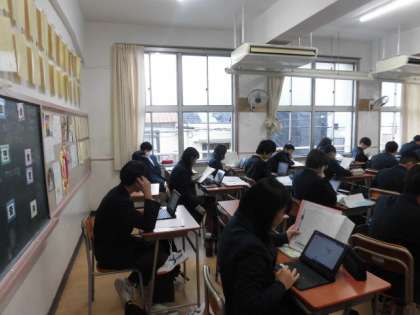 チームズ内で、ハイパーリンクを活用しながら、クイズを作っています。みんな、さすがに使い慣れていますね!