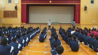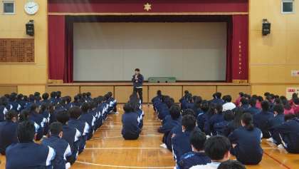 その後、避難訓練について講話を体育館で聞きました。