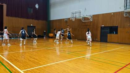 女子バスケットボール部は、大阪教育大学附属天王寺中学校との試合がありました。前半を48対8で折り返し、74対31で勝利しました。多くの1年生