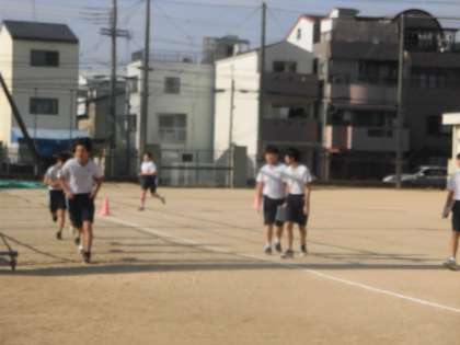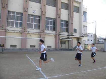 今日は1,500m走です。距離が長くなってきますが、みんな一生懸命走っています。記録もしっかりと取っています。