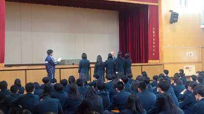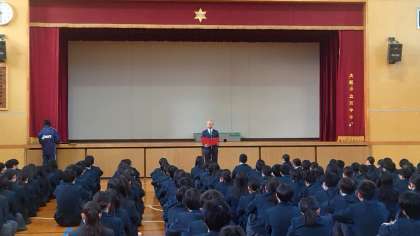校長先生からは、野球界で活躍する大谷選手の入団会見で見られた彼の人柄についてのお話でした。どれだけ有名になっても周りの方への感謝の気持ちを持ち続けていることが会見からも垣間見られ、よいお手本としてほしいという話でした。
