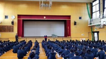 生徒表彰、学校長の講話、生活指導担当者より講話がありました。