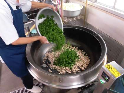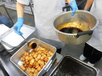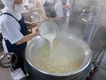 今日は、「はくさいのクリーム煮」です。冬においしいいはくさいやチンゲンサイ、牛乳、クリームを使った中華風のクリーム煮です。水どきでんぷんでとろみをつけています。