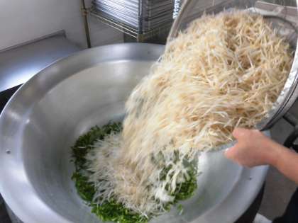 カレーソテーには、ささみ、もやし、ピーマンを使っています。ささみは、鶏の胸の部分の肉のことです。笹の葉の形に似ているので、ささみと呼ばれています。脂肪が少なく、たんぱく質を多く含んでいます。