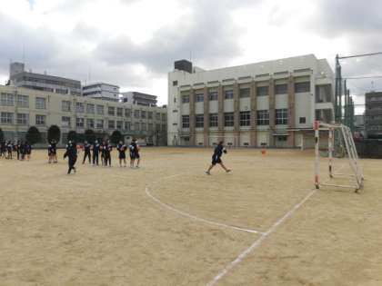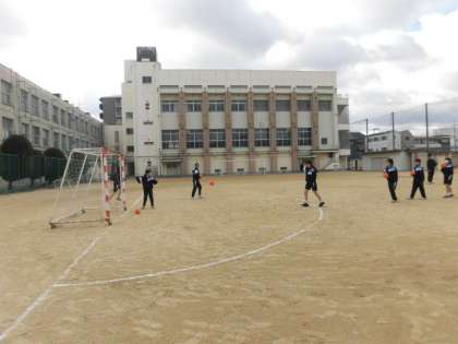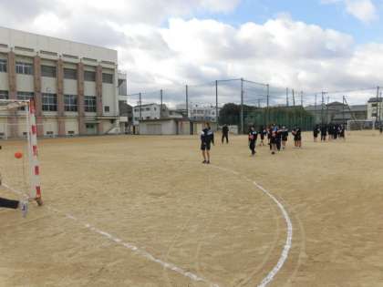 女子は今日からハンドボールを行います。シュート練習をした後に、簡単な試合をしました。寒い中でしたが、元気な声が職員室まで聞こえてきました!
