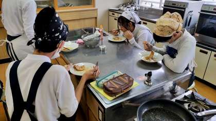 家庭科の授業で調理実習を行いました。