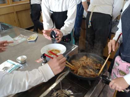 班で協力して、美味しい豚のしょうが焼きを作ることができました。