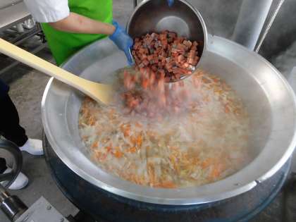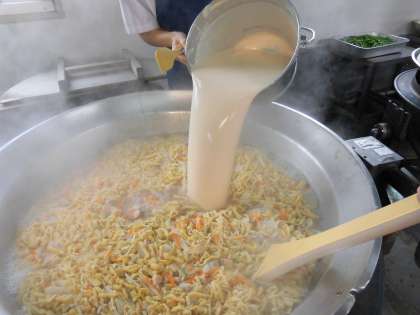今日の給食の「かす汁」には、さけ、つきこんにゃく、うすあげ、だいこん、にんじん、青ねぎが入っています。