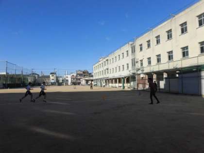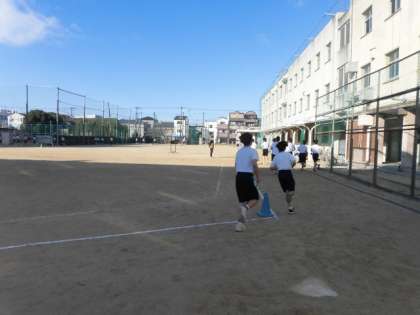 今日は男女一緒に、15分間走にチャレンジしています。しっかりと自分のペースをつかんでいきましょう!
