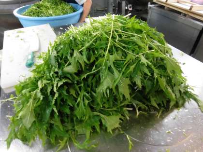みずなは、昔から京都で栽培されていた野菜です。京都では、「みずなが店に出るようになると、冬本番」と言われています。秋の終わりから冬ににおいしくなります。