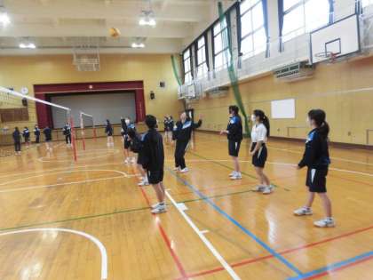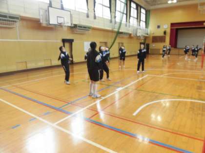 女子は体育館で、バレーボールをしています。なかなか続かずに苦戦していましが、楽しく運動していました!