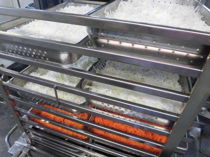 細切りにした具材を甘酢であえた料理を「なます」といいます。紅白なますは、にんじんとだいこんでお祝いの色である紅白を表した、おせち料理の一つです。