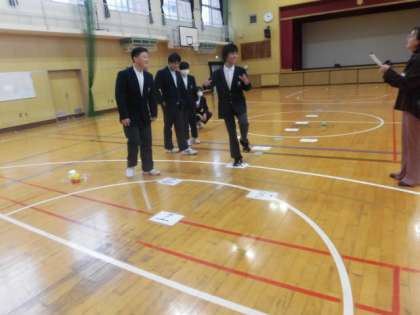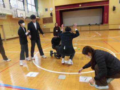 今日は体育館で、ゲームを行いました。難しいクイズもしっかりと答えていました。先生たちも一緒に楽しく活動しました。