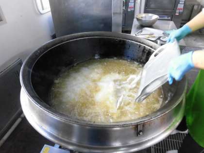 「洋風煮」には、鶏肉とじゃがいも、野菜がたっぷり入っています。しっかり食べて、元気に過ごしてほしいです。