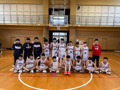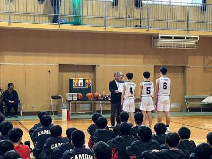 今日は、男子バスケットボール部がOJBジュニアウィンタートーナメント上位リーグの決勝戦に出場しました。大池中学校と対戦し、96対52で勝利し、優勝しました。普段の努力を存分に発揮する生徒の姿が見られました。