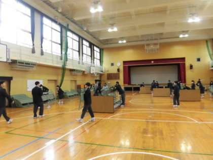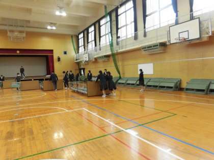 1,2時間目を利用して、2年生が卒業式の式場設営をしてくれています。汚れたシートも丁寧に拭いてくれています。