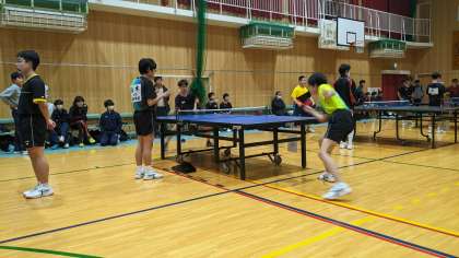 卓球部は新巽中学校で大会がありました。リーグ戦を1勝1敗で2位通過し、トーナメントに臨みます。