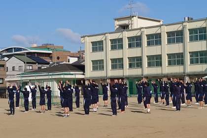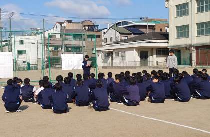 男子はサッカー、女子はバスケットボールでクラス対抗戦を行います。