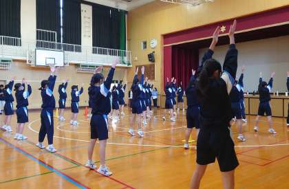 まずは、準備体操でしっかり体をほぐし、開会式の後、スタートです!