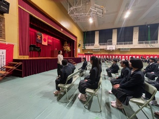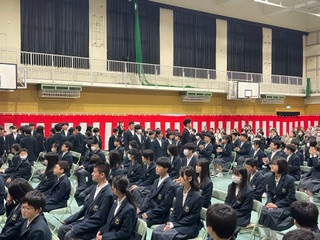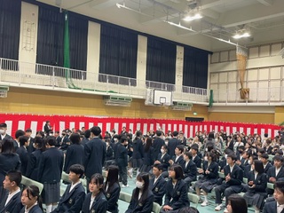 入学式が終了し、新入生は各クラスの担任を先頭に退場します。