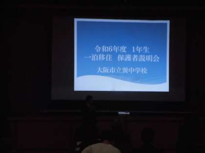 昨日、1年生の一泊移住保護者説明会がありました。学年主任の先生より目的や行程についての説明をしました。たくさんお越しいただき、ありがとうございました。