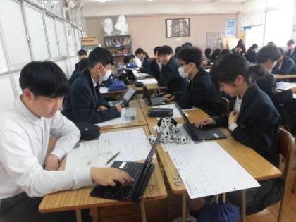 空間にあったデザインを考えようということで、モビールづくりをすすめていきます。タブレットを使って、どのようなデザインにするかを考えています。