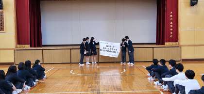 「振り返って良かったと思える思い出や結果を残そう」です。目標に向かって充実した学校生活を送りましょう。